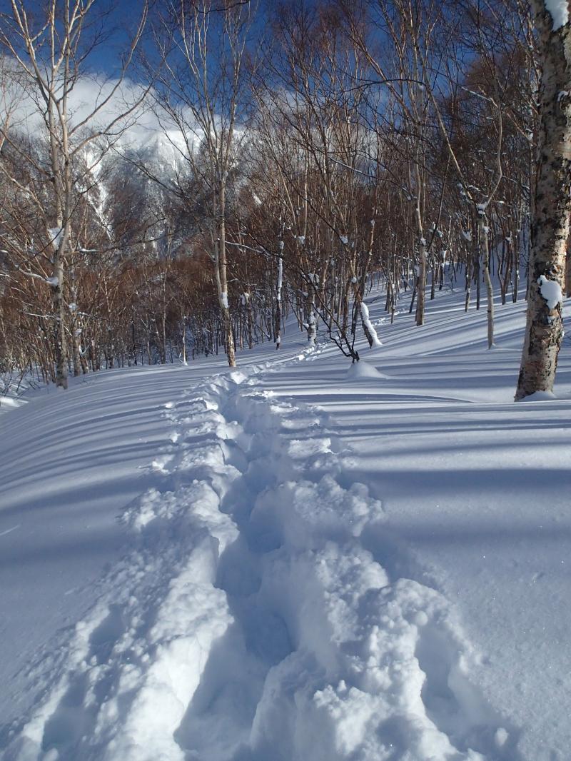 - 旧登山道の為、人が全く入っておらずトレース無し。心ゆくまでラッセルを楽しめる。