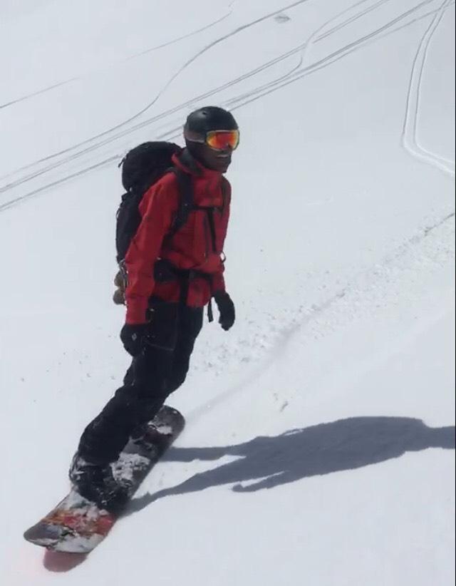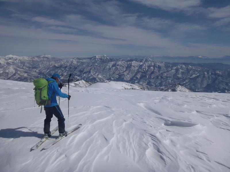 一度山頂を踏んでから少し戻り、お目当ての斜面にドロップイン。