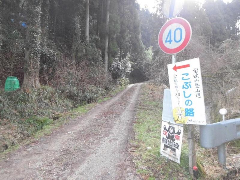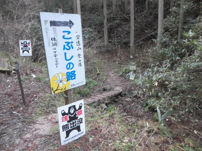 - こぶしの路駐車場<45分>鉄塔<45>山の龍宮城<15>宝達山山頂<60>こぶしの路駐車場