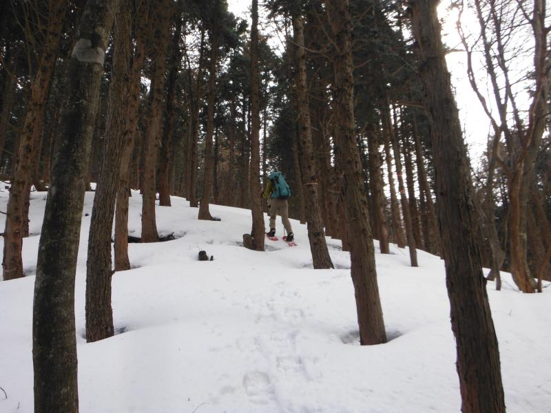 - 歩き始めはかための雪・登山道に入ってからはスノーシューは必要でした