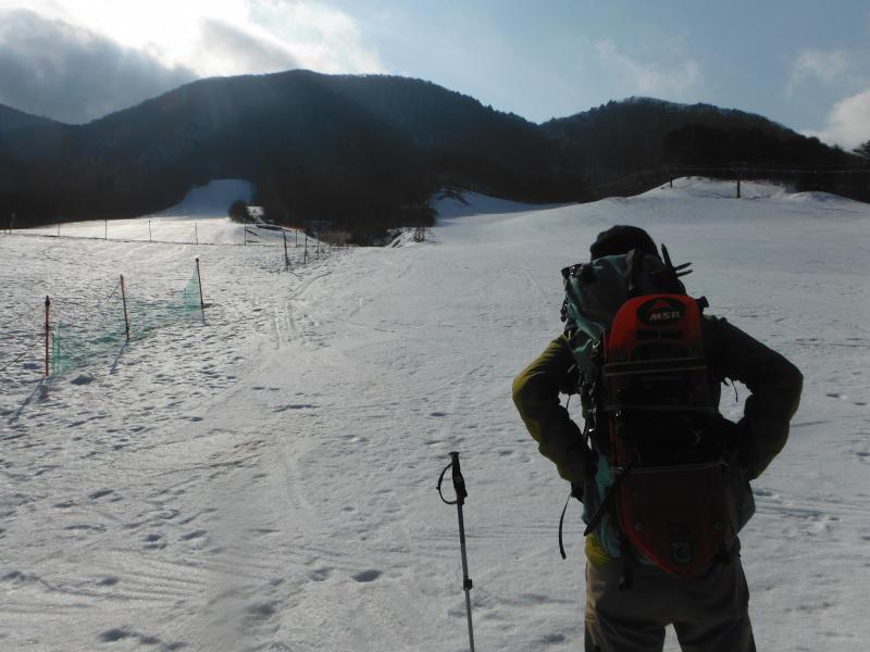 今回は津黒山スキー場に車を駐車し、まずはゲレンデの端を登って津黒山を目指しました。ゲレンデ上部にでると雪が積もった林道にでて、登山道入り口までは林道をしばらく歩きます。今回はここまでは登山靴だけであるけましたが、登山道入ってからは雪が深くなったので、スノーシューを履いて山頂を目指しました。