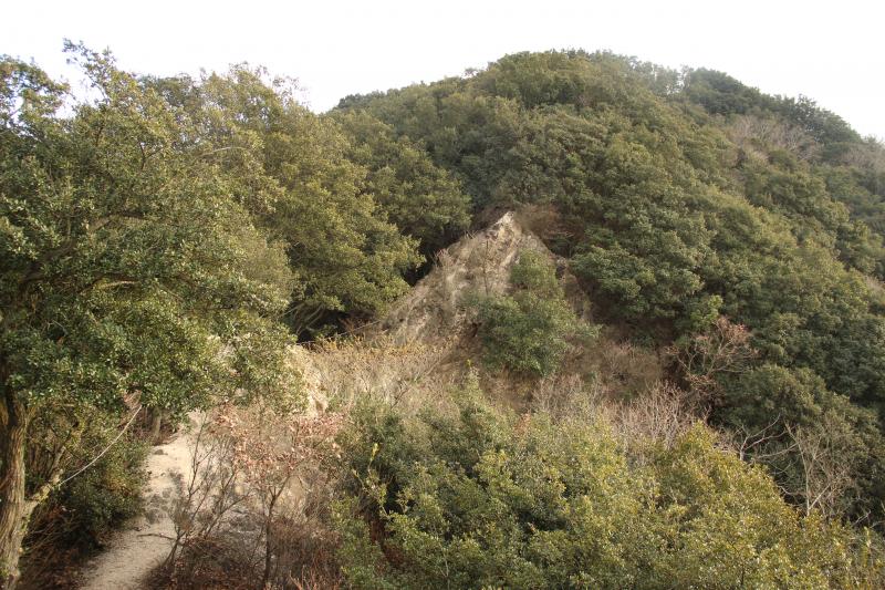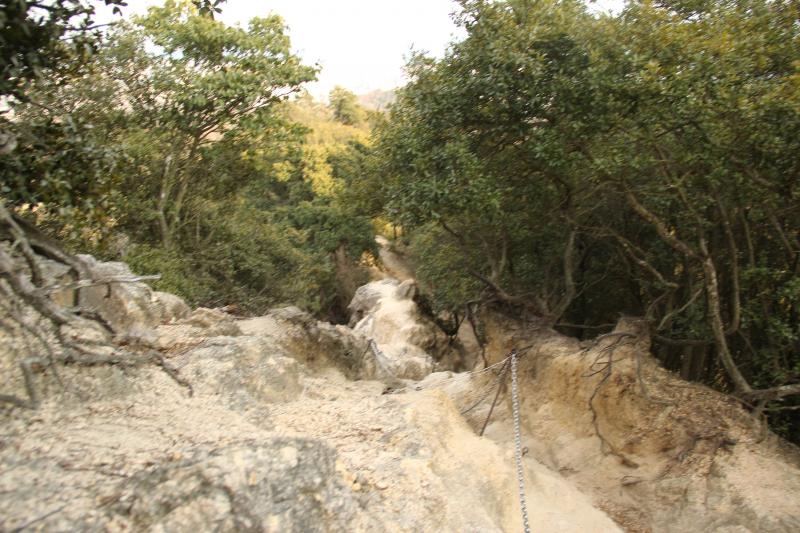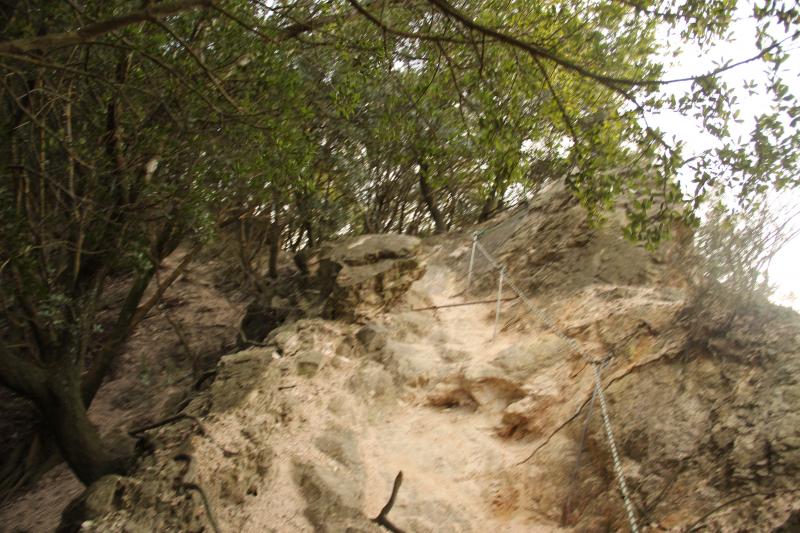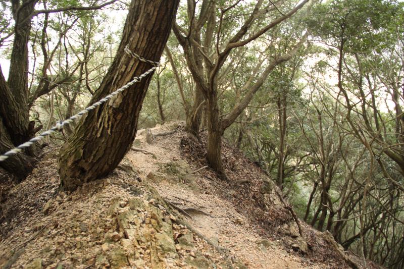 かなり痩せ尾根です。寅ロープありますが、かなり滑りやすく、絶対下りは危ないルートでした。ただ整備はされていて、次回もう一度登ってみます。