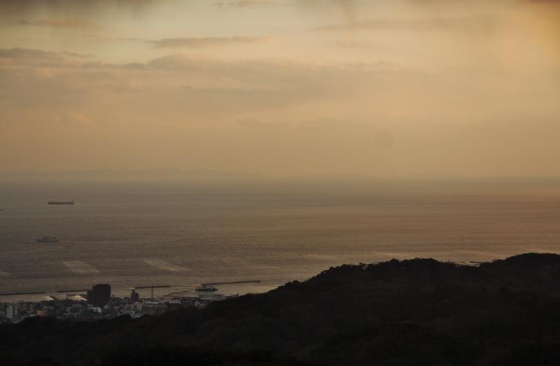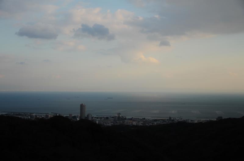 夕暮れを見ながら、急坂を下って、妙法寺の公園に出ました。