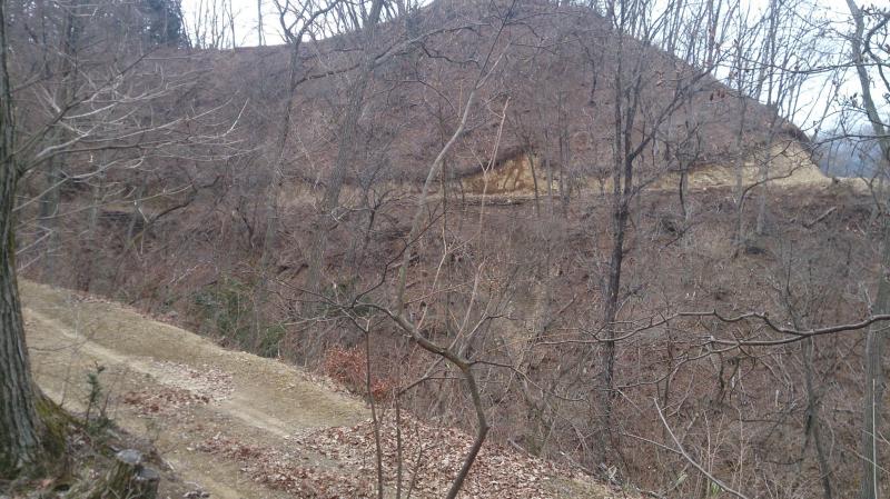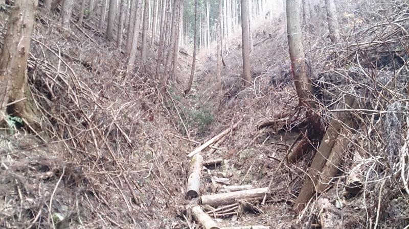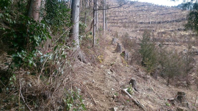 市道山分岐から吊り尾根を数分南下すると、右下に林道が見えるがそこは間違い。進むと北西に行きます。以前私は残念な思いをしました。