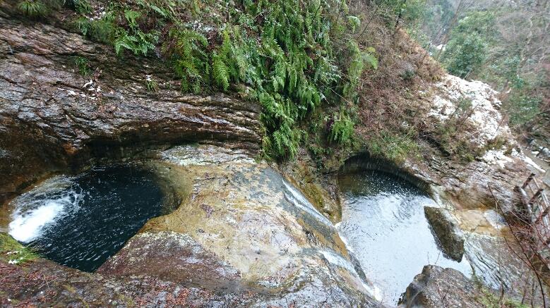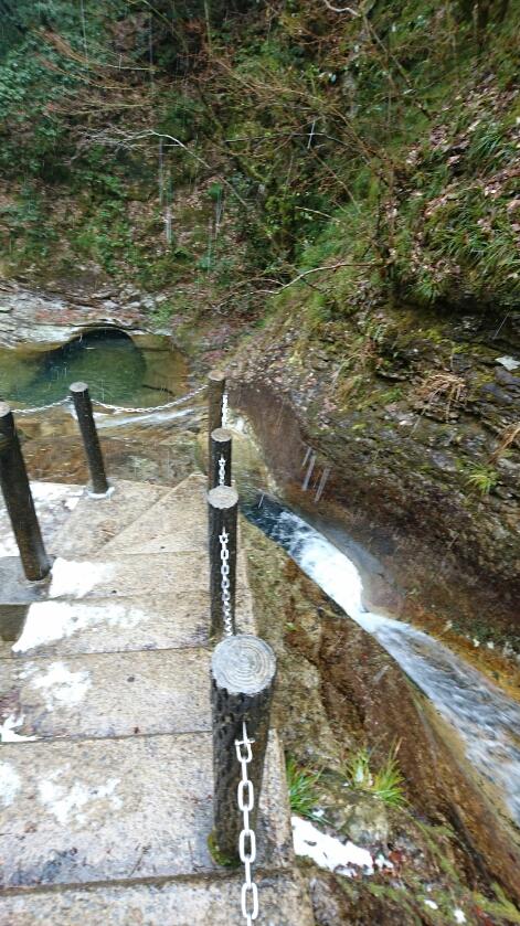 - 辺りの山は所々雪が残っていました。鹿ヶ壺ハイキングも、階段辺りが滑りやすくなっていますので、気を付けて。