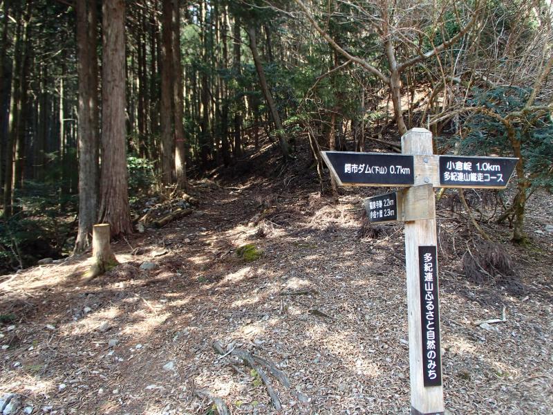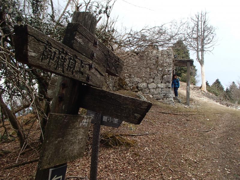 ・登山道が緩やかになったあたりでやっと会話が生まれ始めます。前方に道標が見えてきました。「やっと下山やなぁ~」と笑顔で話していましたが、道標を見て凍りつく・・・。「やってもた・・・」急いで地図を見直すも後の祭り・・・。辻さんに平謝りです・・・。
