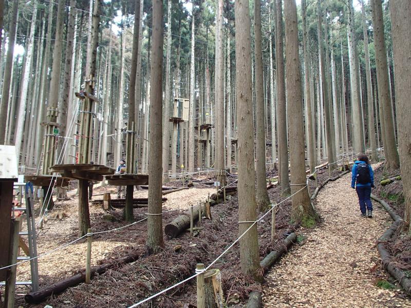 ・結構ゆったりした駐車場に車を停めて出発。まだ未完成のツリーアトラクションエリアの横を登っていきます。完成したら駐車場は満車になりそうですね、土日は。