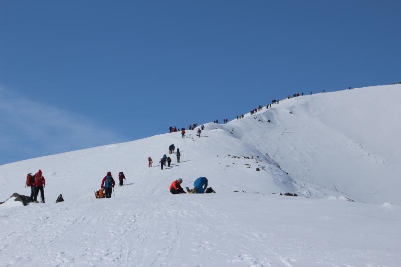 ほとんどの方がピッケルは使わずにストックで登られていました。