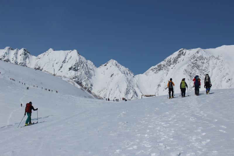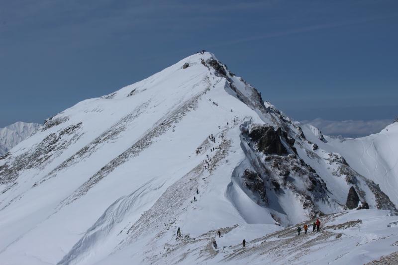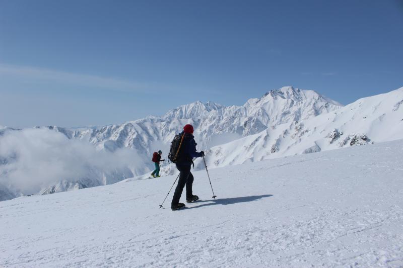 唐松岳頂上山荘の手前が細い尾根の場所があるのでそこはピッケルを出したほうが良いでしょう。