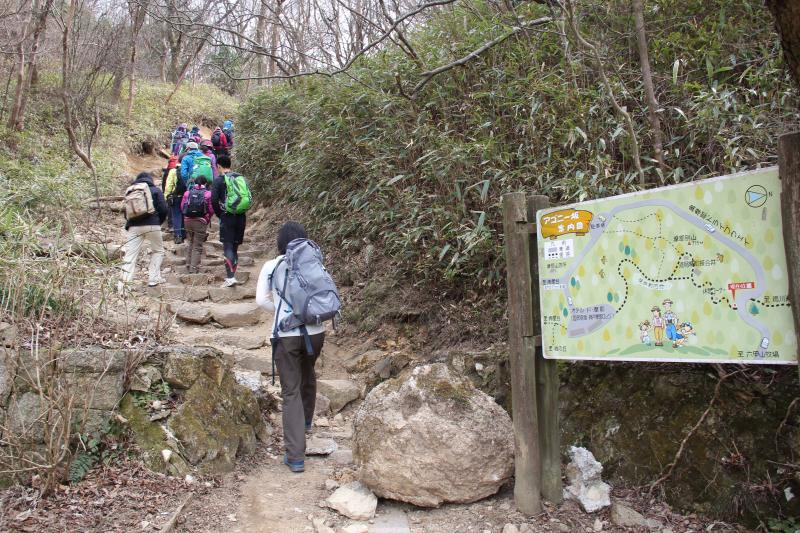 - 阪急六甲駅→(50分)→長峰橋→(75分)→杣谷峠~山まゆの森笹刈とランチ~杣谷峠→(32分)→摩耶山掬星台
