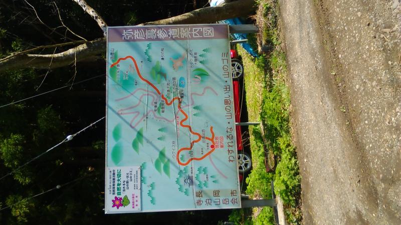 - 裏参道登山口(45分)清水平(45分)能登見平(20分)妻戸山分岐(10分)弥彦山(15分)