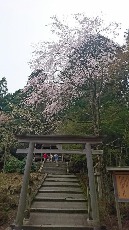 そこからしばらく展望がない&登りとあって、やや心が折れそうになりながらも、鳥居と桜が見えて一気にテンションが上がりました。