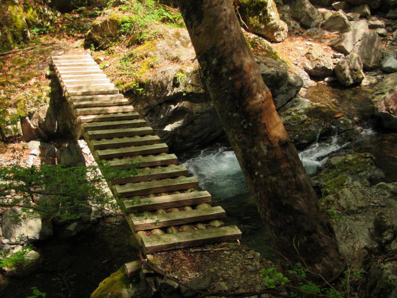 大滝を過ぎると、途中に本流に架けられた立派な木橋が目に留まります。