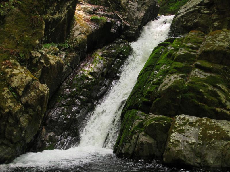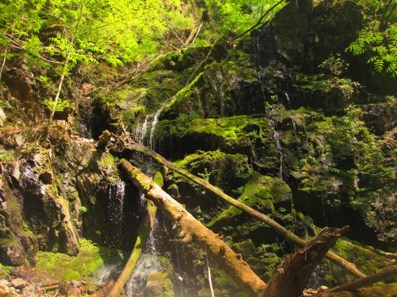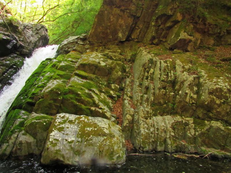 見所として、S字峡・石門ノ滝・小室ノ淵・雨乞滝・4段40mナメ滝・2段20m滝など数々のスポットがあり、苔むした原生林の詰めにも趣が感じられます。