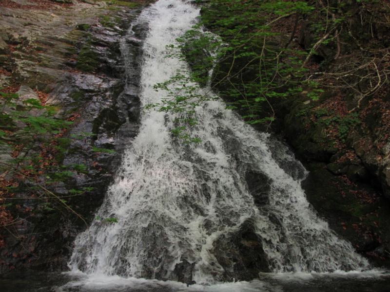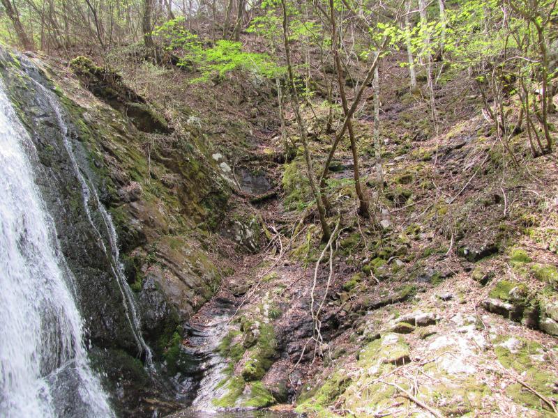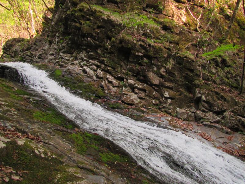 大菩薩北面を流れる泉水谷の一大支流には、4段40mナメ滝を抱く大渓流小室川谷。