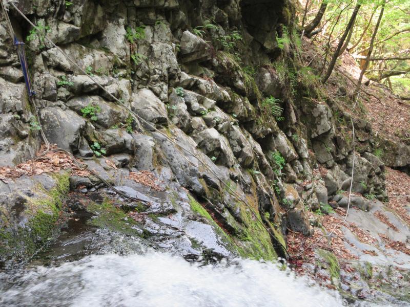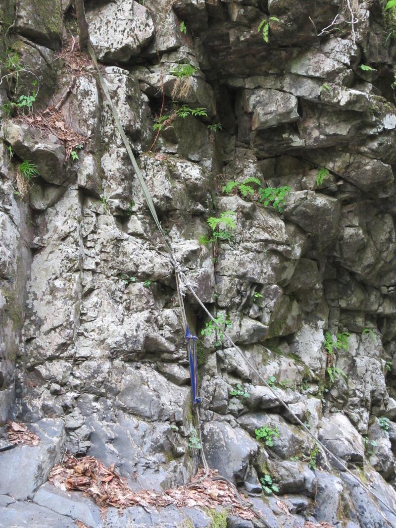 左壁にいくつかの残置支点、右壁には残置ロープが垂れ下がっていますが、エキスパート向きでしょうか。
