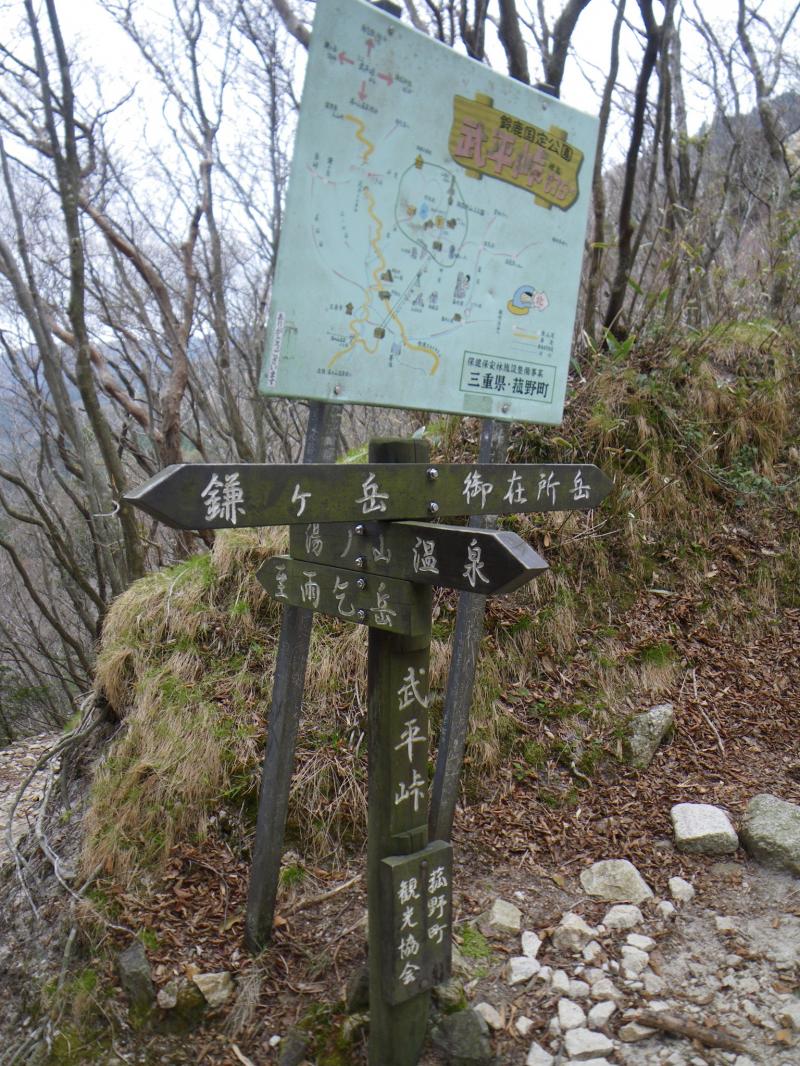 - 湯の山温泉駅(23分)東海自然歩道合流点(21分)岳不動(60分)林道終点(16分)雲母峰Ⅱ峰(15分)雲母峰Ⅰ峰(5分)雲母峰西峰(60分)馬の背尾根分岐(35分)宮妻峡分岐(18分)岳峠(12分)鎌ヶ岳(49分)武平峠(46分)御在所岳(12分)一の谷新道入口(29分)鷹見岩(55分)一の谷山荘(20分)湯の山温泉バス停