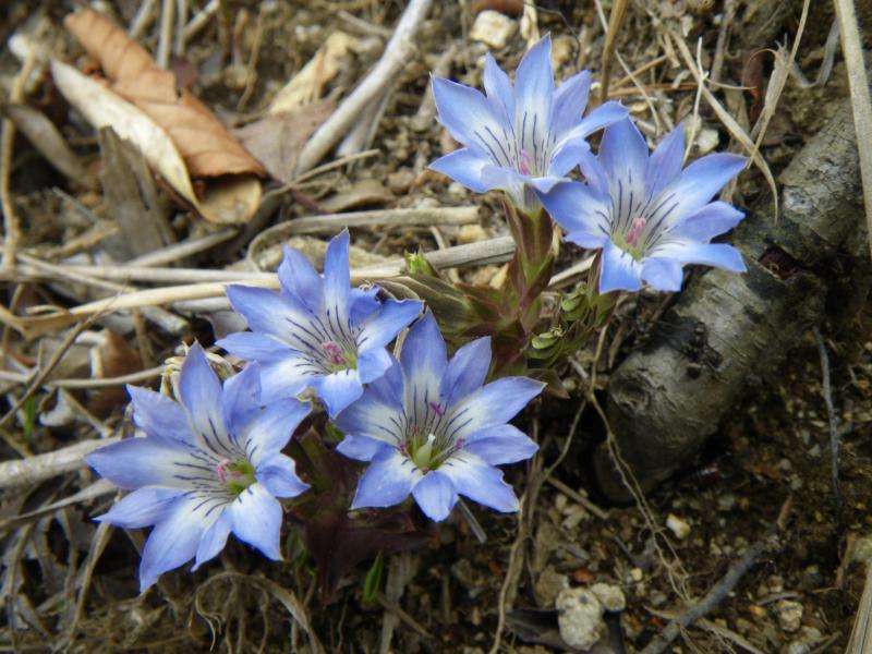 鎌ヶ岳(かまがたけ・1161m)は関西百名山・鈴鹿セブンマウンテンの一つで、鈴鹿の中では最もアルペン的な容姿をもった山で鈴鹿のマッターホルンと呼ばれ、人気が高いです。昨年は長石谷から登りましたが、その長石谷は今年もイワザクラが見頃を迎えているようですが、今年はアカヤシオが目的で雲母峰から歩いてきました。今回はアカヤシオを見つけたと思ったら、高く、遠くうまく写真に取れませんで、馬の背尾根近辺でようやく目の前で花が拝める箇所がありました。昨年は鎌ヶ岳から雲母峰方面は桃色のきれいな稜線でしたが、今年はさっぱりで早すぎたのかよくわかりません。代わりに鎌ヶ岳に近づくに連れて、ハルリンドウ・バイカオウレン・ショウジュウバカマが多く見られました。鎌ヶ岳~御在所岳の稜線はバイカオウレンやハルリンドウの群生がたくさん見られましたが、アカヤシオは依然として少ない感じです。御在所岳ではガスが立ち込め、展望もなく、バスの時間が迫っているため、すぐに下降できる一の谷新道を選んで下山しました。一の谷新道は初めて足を踏み入れましたが、急で歩きにくい登山道なので下りは使いたくない道というのが感想で、登りに使っても樹林帯の急登で疲れる道でしょう。一の谷新道でもアカヤシオが見られましたが、登山道から離れている箇所ばかりで撮影はできませんでした。