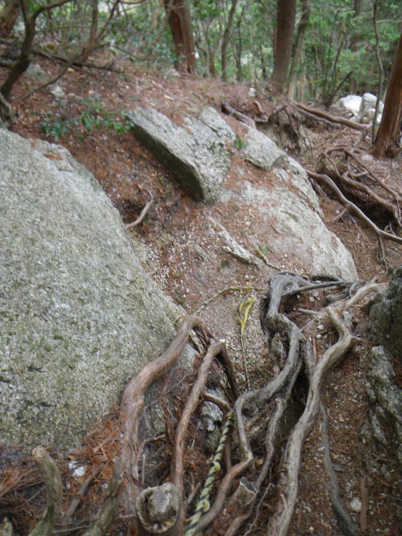 ⑱一の谷新道は急で下山はおすすめではないです。途中、鷹見岩や展望岩などの岩場があり、ロープ場やザレた急な道がたくさんありますので、スリップ注意