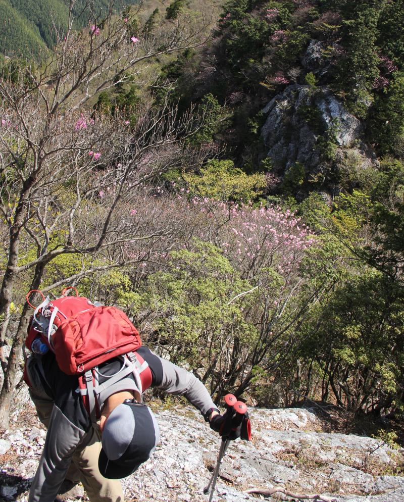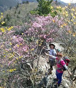 アケボノツツジは岩場にさくので、急な下り、登りあり