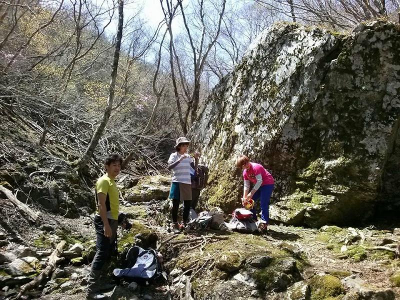 谷にて休憩 11:30 少しボルダリング 12:30~ 岩場 13:00~日蔭ツツジの滝 13:30 ~登山口 14:00