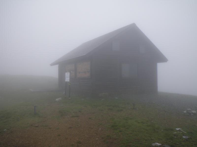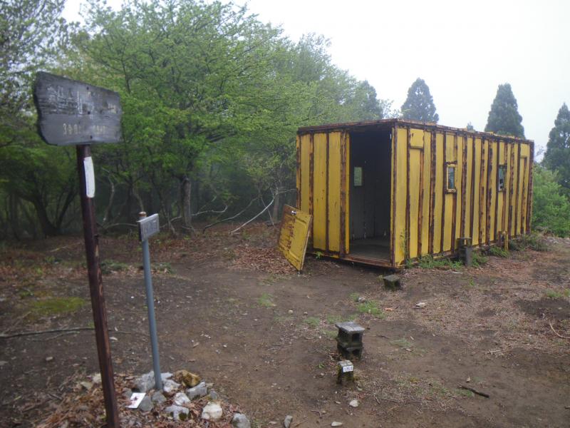⑦四合目にコンテナ一両の壊れた避難小屋があります