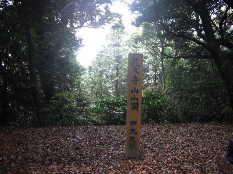 さて孔大寺山への登りにかかります。それぞれの峠までかなり下るので300mくらいは登り返しがあります。これがきつい!とにかく歩幅を抑えて疲労を少なくしつつ登りました。山頂はこの連山の最高峰だけあって大賑わい。少し先に進み休憩しました。