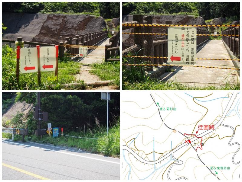 - ショウケ越に架かる橋は5/15~5/19で点検があったようで、以降通行止めになっています