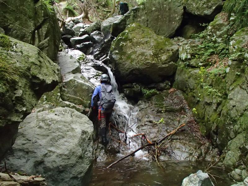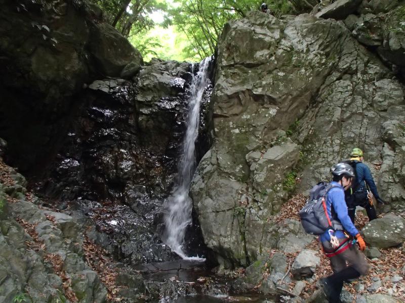 手ごろな滝が多く、難しい滝は巻き道がしっかり付いているので、沢シーズン前の足慣らしにちょうど良い沢でした。曲り滝の上には林道が走っているので、時間切れのときはそこからエスケープもできます。
