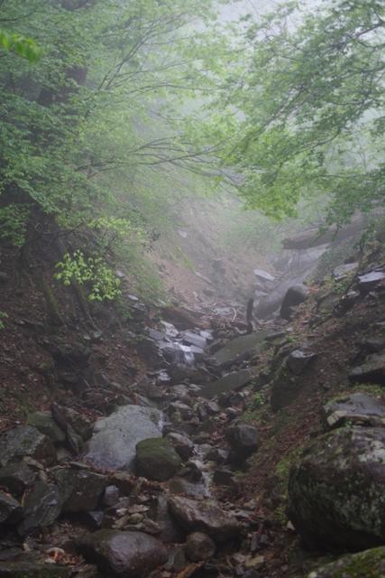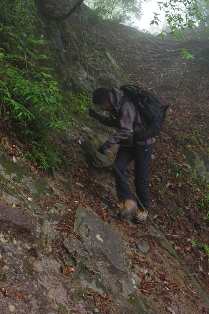 足元が濡れているので、石の上、ぬかるみが多く斜面は滑りやすかったです。