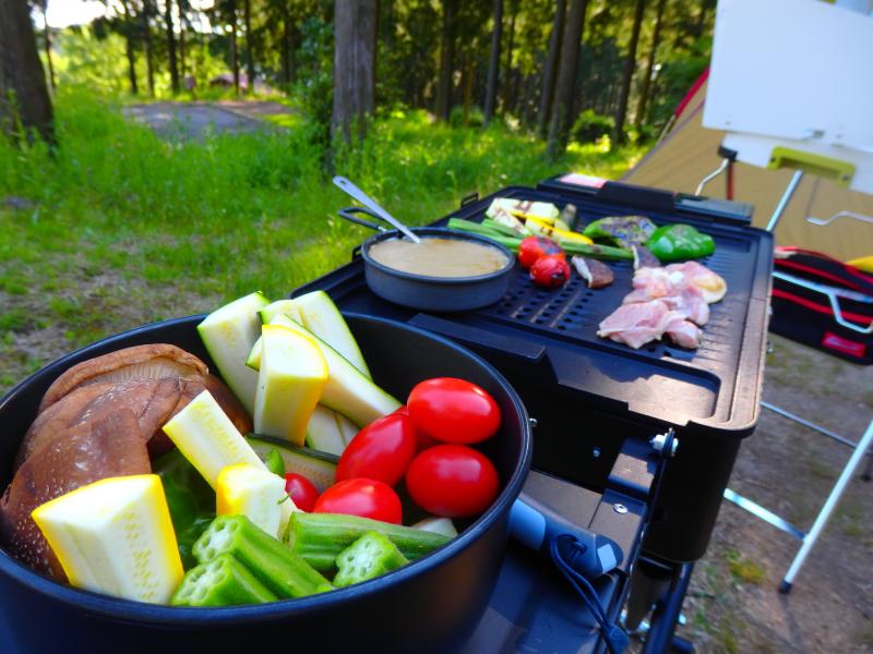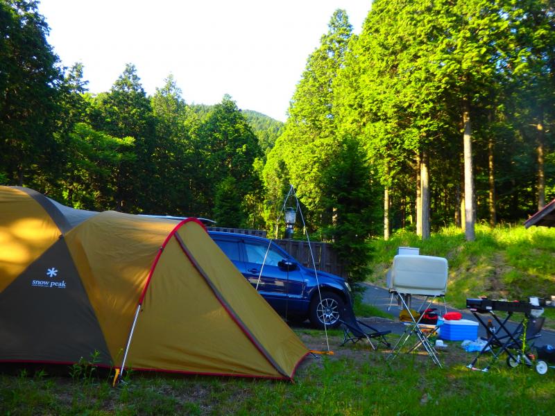下山後はふもとにある四季の里・旭志でキャンプ!