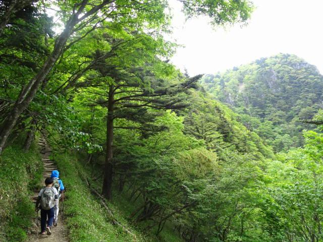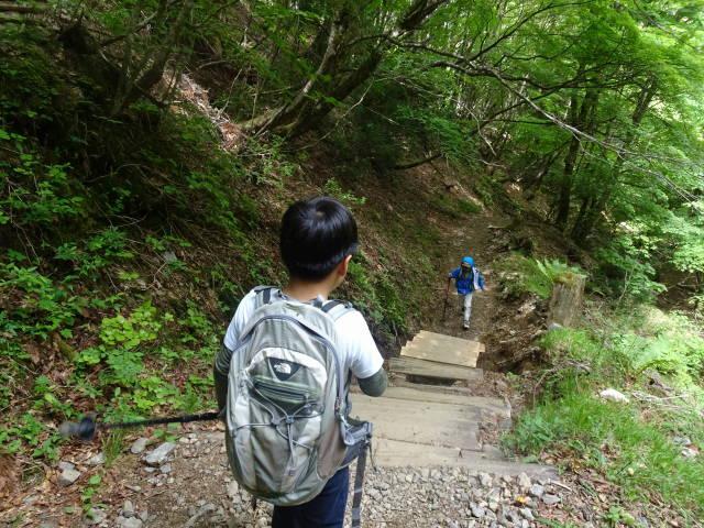 ただ、行場を巻くように設置されている木製の階段や道は急斜面に設置されており、下りは特に子供は不安に感じると思います。段差も大人サイズですのでフォローは必要だと思います。