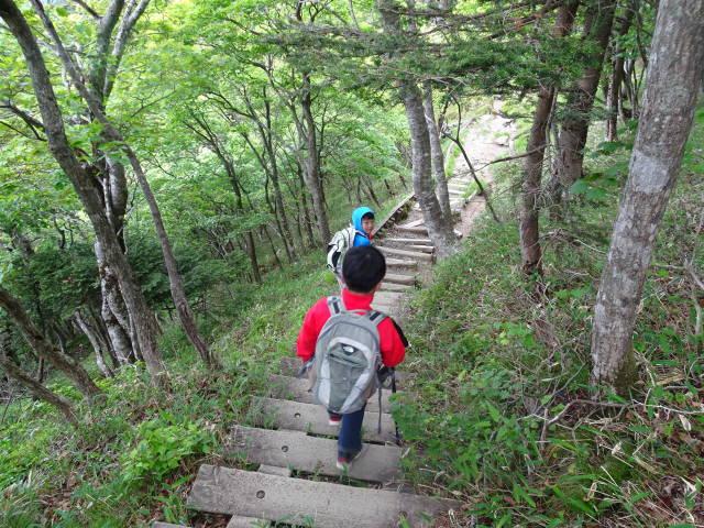 小学4年生と2年生の男児ですが、下りはさすがに疲れたらしく木の根に足を取られたり小さく刻まれた排水路にはまったりといろいろありましたが無事に下山しました。