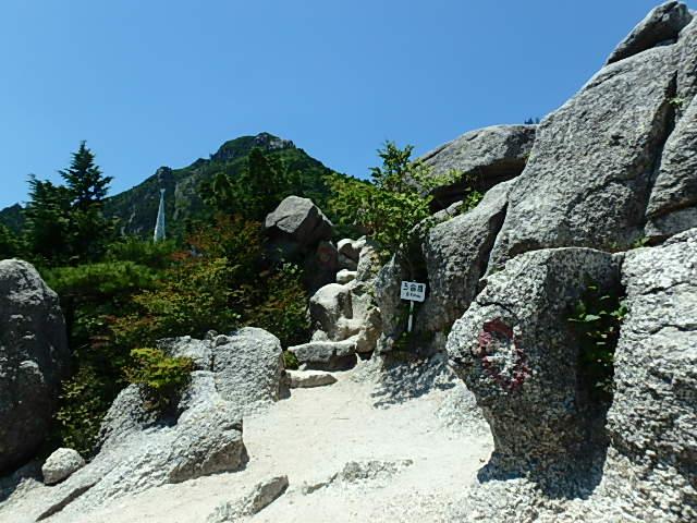 - 駐車場==(10分)==中登山道口==(20分)==3合目==(35分)==5合目==(120分)==御在所岳山頂==(60分)==藤内小屋==(75分)==中登山道口==(5分)==駐車場