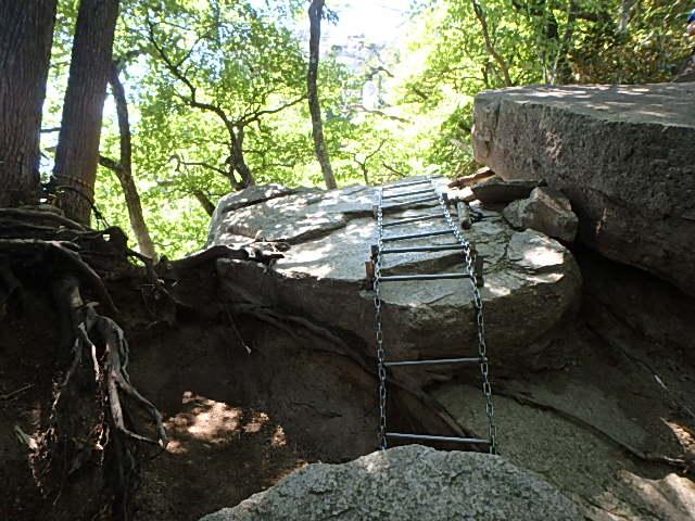 最初からかなりの急登で、久しぶりの登山には少しきつかったですが、岩場や鎖場が多く楽しい登山となりました。地蔵岩など、不思議な形の岩が多く、景色がすばらしい中道コースはおすすめです。帰りは川沿いで、また違った景色を楽しめる裏道コースは、途中岩場を登るクライマーの姿を見ることもできました。