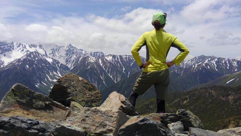 常念岳山頂で小休止し、蝶ケ岳へのアップダウン、槍穂ビューの稜線歩きへ!