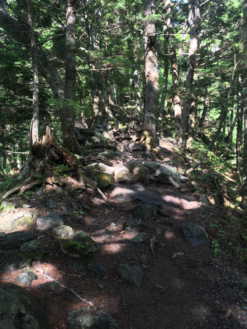 7時に広河原山荘から登り始め、山頂を目指します。電車とバスの中で仮眠を取ったとはいえ、計2時間も寝れていないので中々体のエンジンがかからず、地味にキツい上りでバテバテです。
