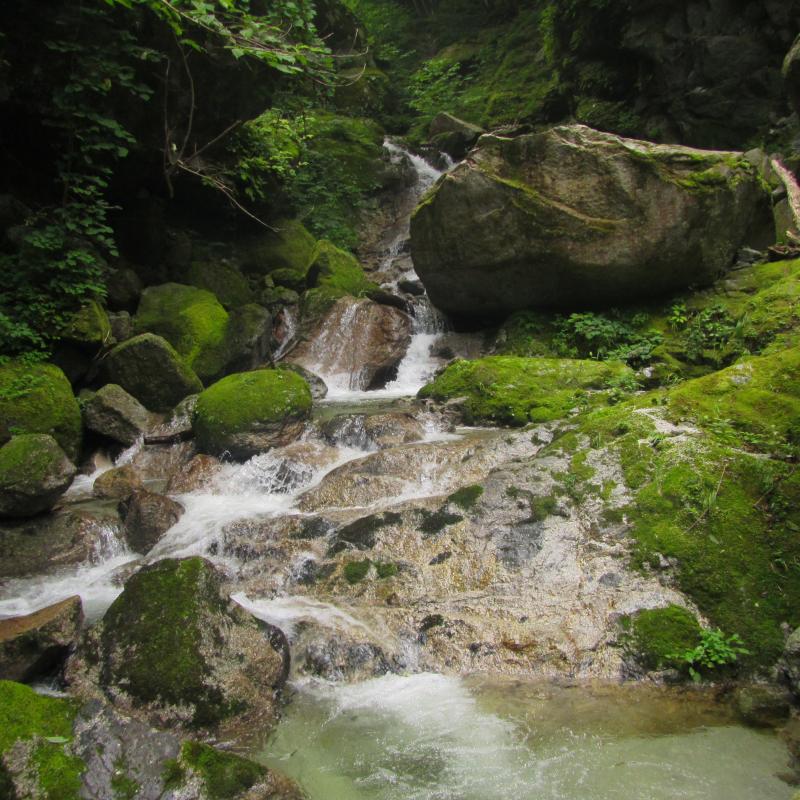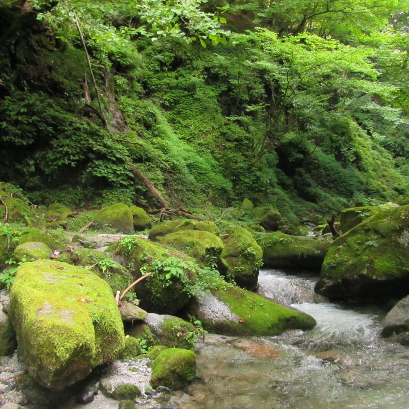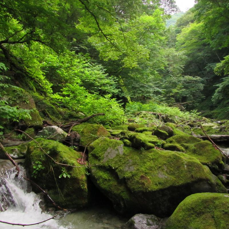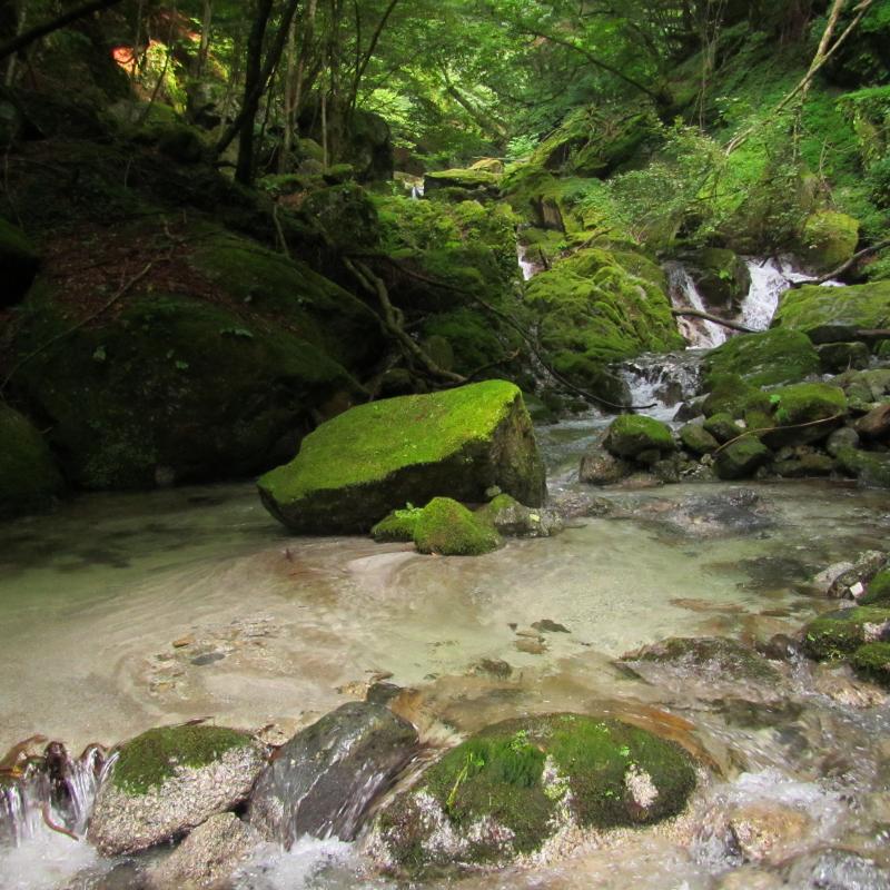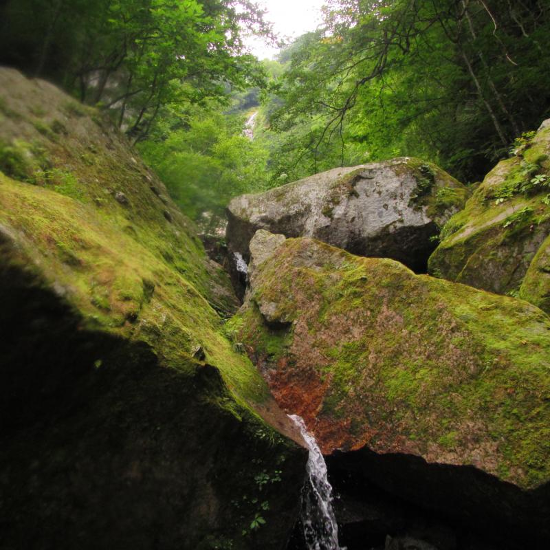 堰堤群を越えると沢は暫く平凡になりますが、美しい原生林のなか、熟成された苔と白砂と清流が心の中で輝きを増していきます。