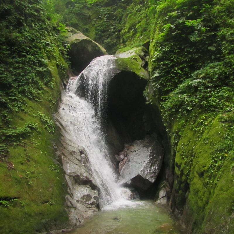 写真はありませんが、左岸の大岩の間を強引に縫って登ることで突破しました。