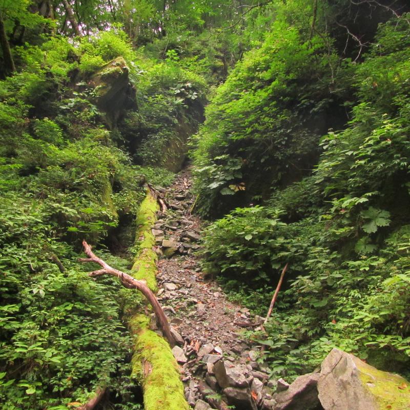 右俣に入ると、さらに傾斜が増し、いよいよゴルジュ帯に突入します。