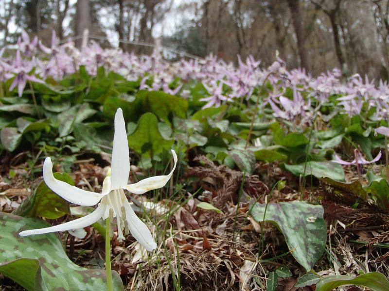 ・下りは香積寺経由で足助に立ち寄り、もう一度カタクリ鑑賞。見終わった頃に雨がポツリ・・・。本日の旅の終了です。