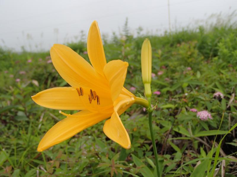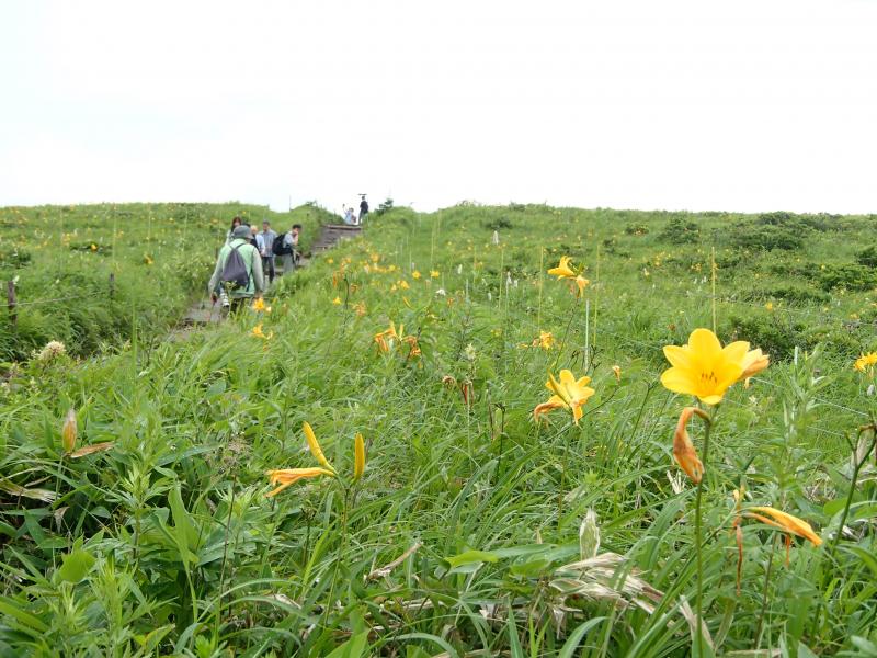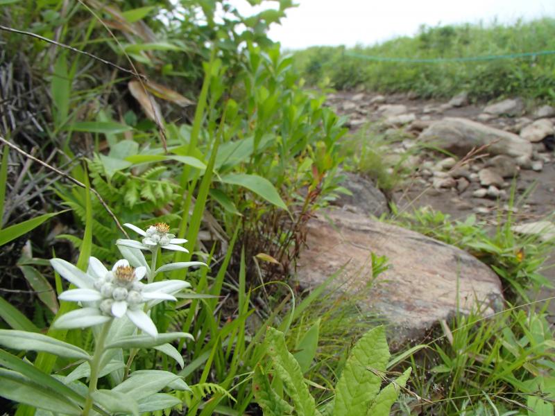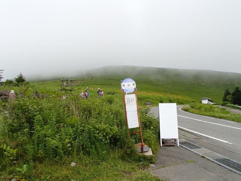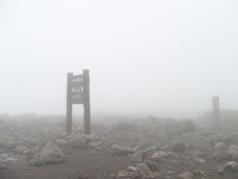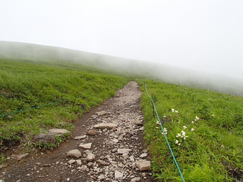 ・観光客が沢山おられ、咲き誇る花々を写真に収めておられました。道標に従い山頂を目指して歩きます。が、どんどん霧が濃くなってきて視界不良に・・・。まさに「霧ヶ峰」です。