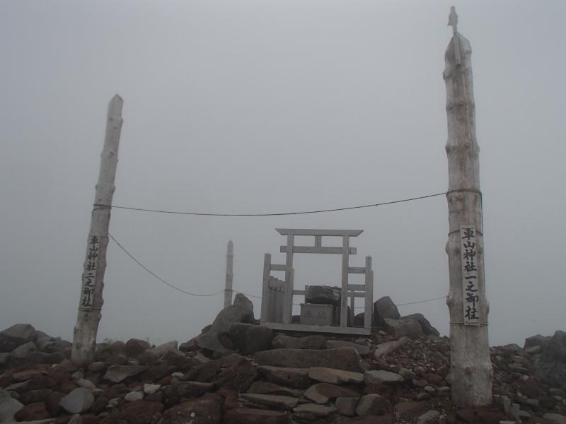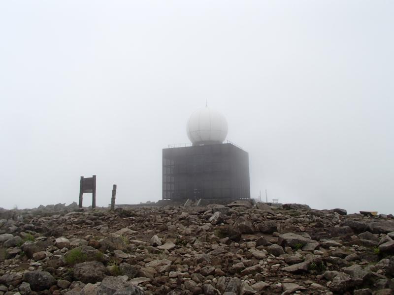 ・真っ白になってしまった道を緩やかに登って行くと30分ほどで車山の山頂に到着。見えない、寒い、風強い・・・。写真だけ撮ってとっとと退散。