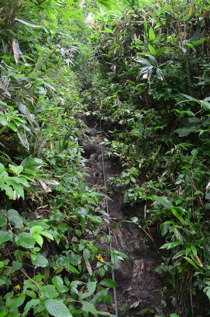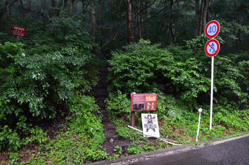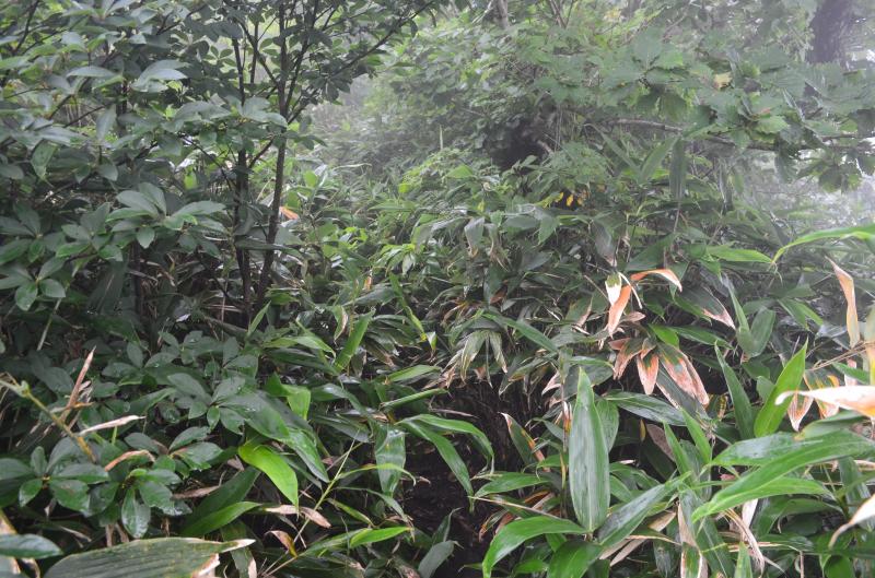 前夜降った雨で熊笹の葉が濡れておりズボンがすぐにびしょしょに。また地面はぬかるんでおり、靴はドロドロに。