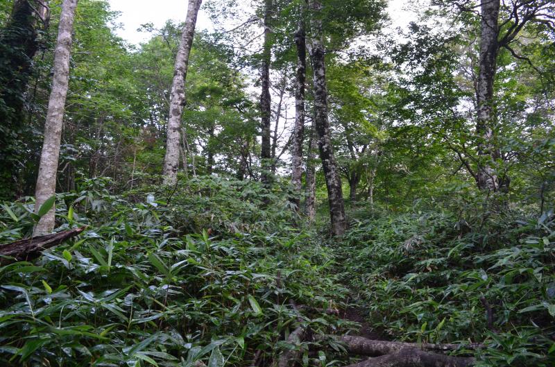 最初はブナ林を緩やかに登っていくのですが、標高を上げてくると急登も現れます。