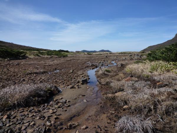 朝日岳と三本槍岳の間は那須特有の岩だらけの道ではなく、土の道で、霜柱もありましたが、それでも昼間は暑い。雪が着いているか否かという時期なので軽アイゼン(6本爪)を用意しましたが、使うはずも無く…。きっと8日も安全に楽しく歩けるでしょう。しかし、来週は気温が下がるという予報。防寒着は必須。