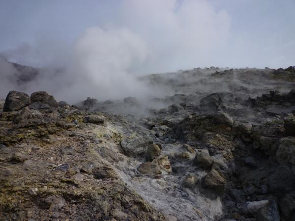 シューシュー音を発しながら噴煙がモクモク上がっています。硫黄臭もしますので長居は無用!しかし周辺によい温泉が豊富なのはこの火山活動のおかげでしょうか♪
