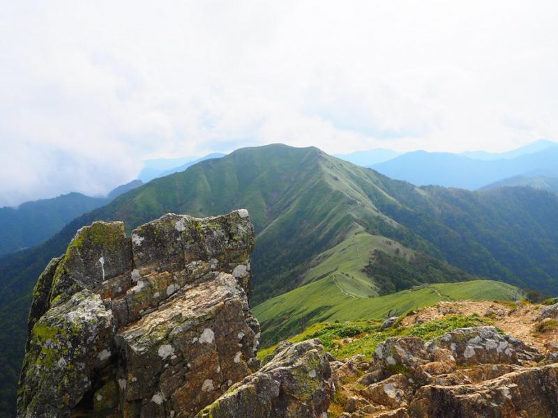 頂上からの景色は、次郎笈(じろうぎゅう)の稜線が半端なく素敵で、時間があれば挑戦したかった!