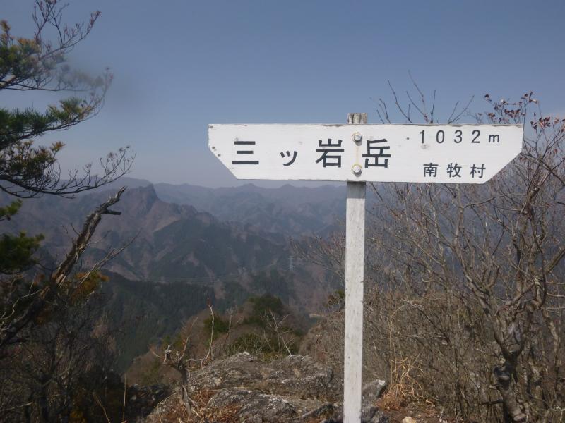 三国岳は山頂に標識がないですが、基準点が設置されている事、案内図に描かれた位置と、古文書に千方窟が「按城郭三国ヶ嶽ト笛吹山ノ両間半腹ノ地ニアリ…」とある事、古い石碑がある事などで山頂と判断しました。三国ヶ嶽、高峰山、サンゴクとも呼ばれているそうです。