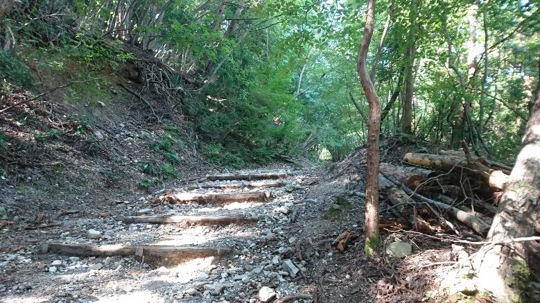 ペースは母にあわせて、かなりゆっくりのペース。所々に東屋やベンチはありますが、それ以上に休憩が必要で、途中の階段や倒木に座って何度も休憩。
